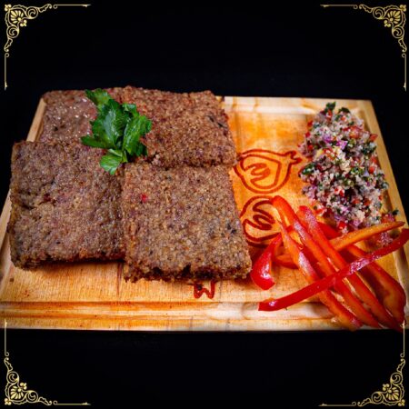 Al horno y elaborado con carne picada, trigo burgol y distintas especias arabes.