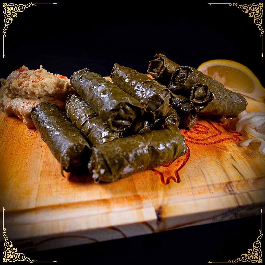 Es una hoja de parra rellena de una mezcla de arroz, con carne picada y distintas especias