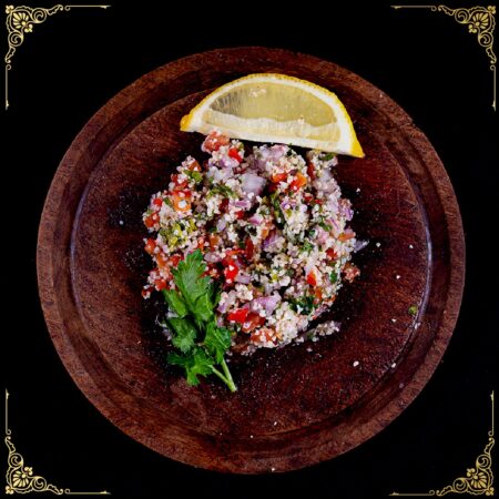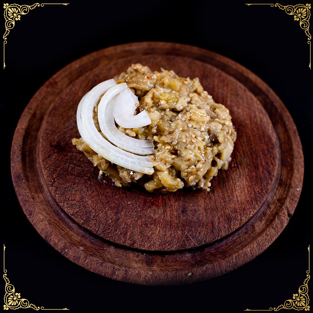 (150gr) (o Baba ganoush) Una mezcla de tahina, zumo de limón, ajo y especias varias.